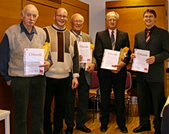 Die geehrten Mitglieder. Von links Bruno Beismann, Josef Mischko, Hans Heinrich, Franz-Dieter Högerle und Clemens Weller „Das Original heißt SPD"