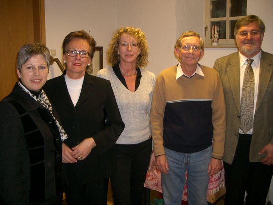 Bildtext: Konrad Sorg ehrte bei der Bettringer SPD Mitglieder für langjährige Treue von l. n. r. Sigrid Heusel (SPD-Stadtverbandsvorsitzende), Susanne Helbach-Grosser (20 Jahre), Gisela Betz (20 Jahre), Alfred Salmen (10 Jahre) und Konrad Sorg.