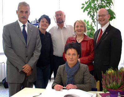 Von links: Bürgermeister Bühler, Fraktionsvorsitzender der SPD Manfred Schramm, Ortsvereinsvorsitzende Sonja Elser, Generalsekretärin der SPD in Baden-Württemberg Katja Mast MdB, SPD Kreisvorsitzender Josef Mischko. Vorne sitzend die Arbeits- und Sozialministerin des Landes Baden- Württemberg Katrin Altpeter.